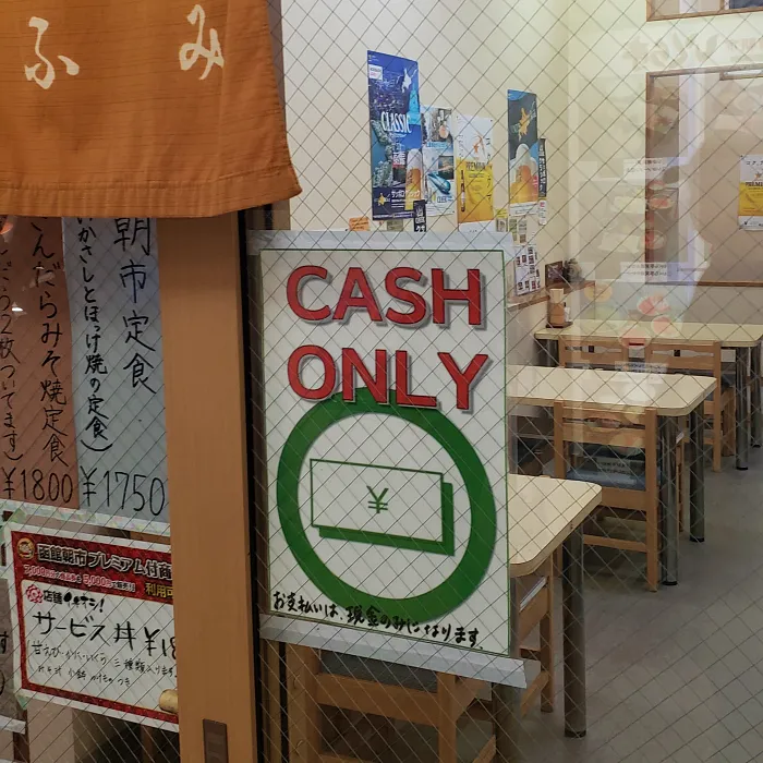 이 식당의 입구에는 따로 표시가 없었지만, 덮밥 골목의 꽤 많은 식당의 입구에 “Cash Only”라는 안내가 붙여져 있었다.