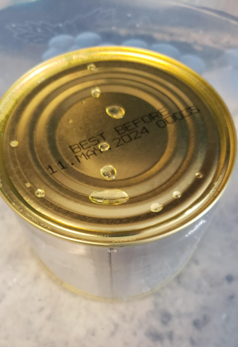 - 캔의 겉면을 싸고 있는 종이를 제거하고, 개봉하지 않은 캔을 따뜻한 물에 담아서 데운다. (수도물 사용 가능)