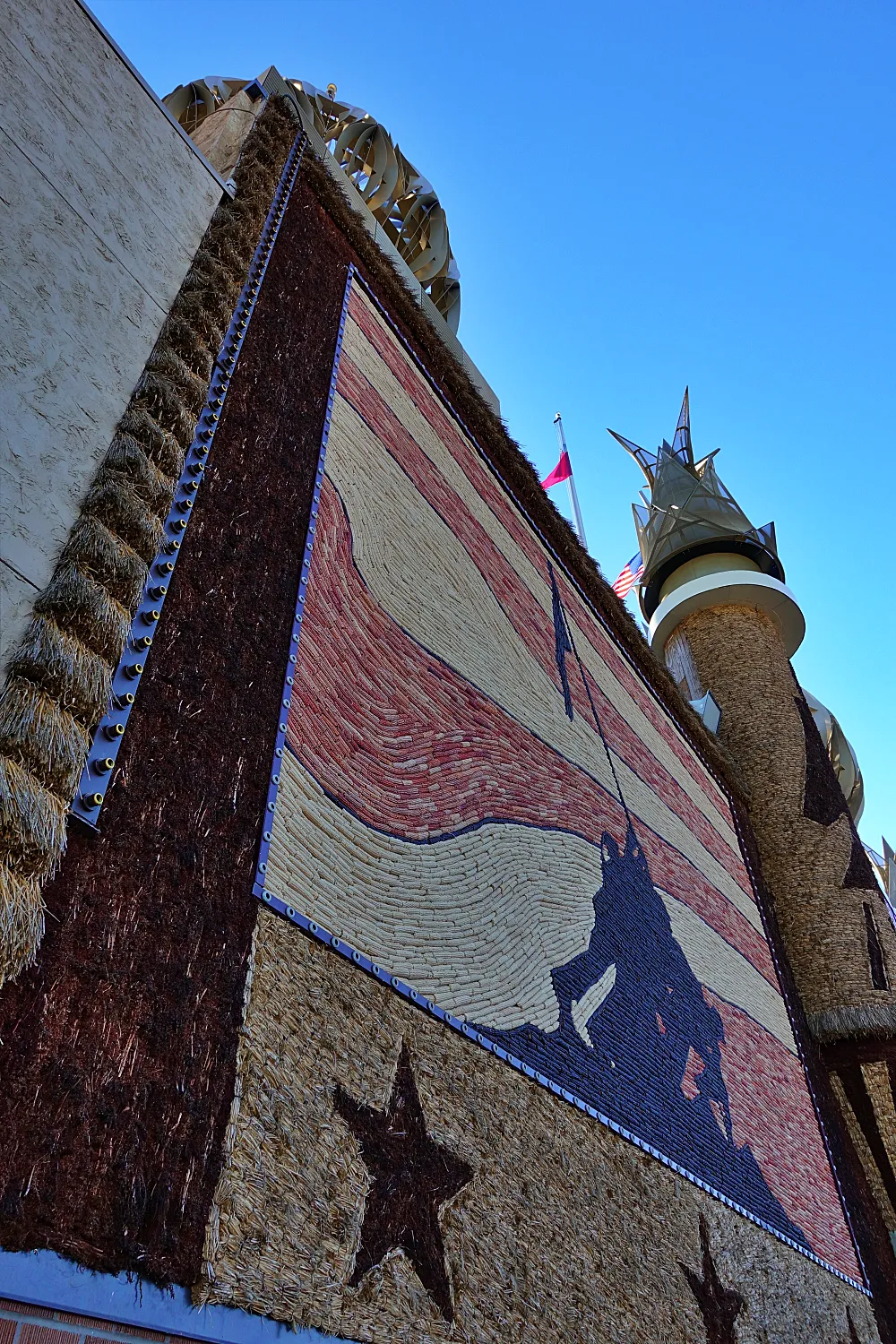 외부와 내부에 다양한 색깔의 옥수수와 다른 곡물류의 잎, 줄기 등으로 만들어진 벽화가 있고, 매년 주제에 맞게 새로 만들어진다. 옥수수 벽화는 8월 말에 철거되고, 재료 수급상태에 따라 조금씩 달라지지만, 10월 1일에 새로운 벽화가 완성된다고 한다. 2019년부터 3년 계약으로 Dakota Wesleyan University의 Kyle Herges교수의 지도하에 디지털 미디어 및 디자인 과정의 학생들이 벽화 디자인에 참여했다고 한다.