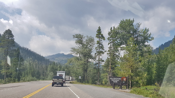 우리도 코디에서 잠시 쉬면서 주유도하고 간식거리도 사서 다시 출발했다. 옐로스톤 국립공원 이스트 게이트부터 와이오밍 코디를 거쳐 일리노이 시카고까지 이어져 있는 “US-14 (“16” 또는 “20”로도 불린다.)”를 따라서 옐로스톤 국립공원으로 향했다. 달라진 풍경을 감상하며 대략 1시간 정도 달려가니 드.디.어. 옐로스톤 국립공원 이스트 게이트의 사인이 보인다. 게이트로 진입하는 차량들이 많아 길게 대기줄이 있었지만 게이트 3개가 오픈되어 있어서 생각보다는 빠르게 통과할 수 있었다.