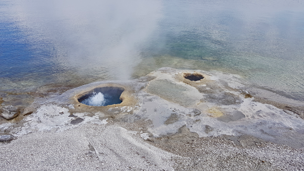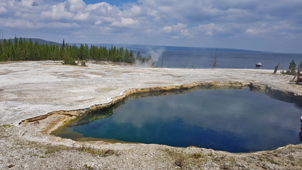 주차장에 차를 세워두고 걸어서 한바퀴 둘러볼 수 있는데 천천히 둘러보면 약 30분 정도면 둘러볼 수 있는 곳이다. 호숫가에 있어서 다양한 형태의 Pool, Spring, Geyser, Cone, 등을 볼 수 있고, 마침 구름이 적당히 껴있는 날씨여서 햇빛이 날때와 구름이 햇빛을 가려줄 때 물색이 달라 보였다. 옐로스톤 여행을 하면서 이런 Geyser들이 시간에 따라 또 다른 모습을 볼 수 있다는 걸 알았다.