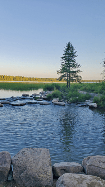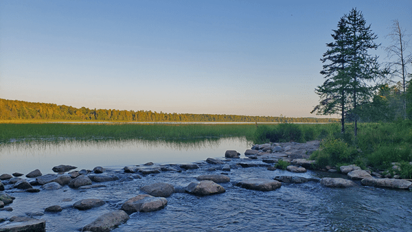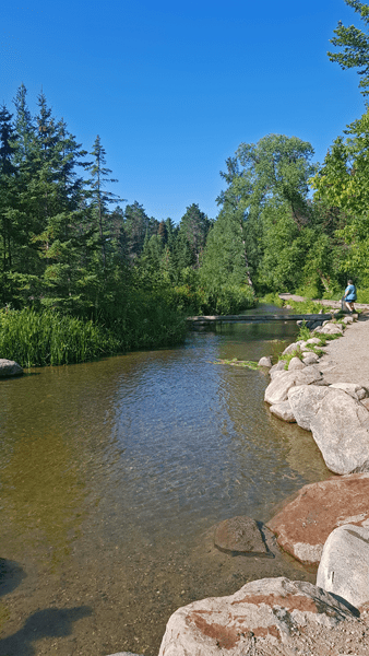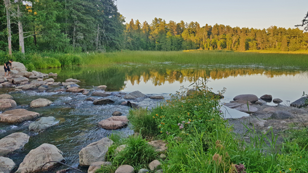 개울을 가로지르는 돌들이 이타스카 호수와 미시시피 강의 경계를 표시한다고 한다.