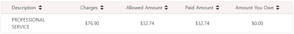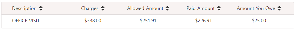 다음은 의사를 방문하여 진료를 받은 것에 대한 청구서다. (병원에서 내 보험에 $338을 청구했고,  그중 보험이 $251.91을 인정했으며 이 돈에서 내가 낸 co-pay $25를 제외한 $226.91을 보험사가 병원에 내준다.)