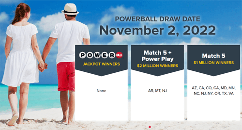 [업데이트] 2022년 11월 7일 파워볼 추첨은 파워볼 측의 기술적 결함에 의한 추첨이 늦어졌다는 공식적인 발표가 있었다. 현지시각 11월 7일 오후 10시 (CST) 추첨이 이루어졌어야 했지만, 다음날 아침까지도 추첨 번호와 결과가 발표되지 않았다. 한참이 지난 11월 8일 11시쯤 추첨 번호만 공개됐고, 12시쯤 1등 Jackpot 당첨자가 캘리포니아 (CA)에서 한명이 나와 총 $2.04 Billion (Cash value: $997.6 Million)을 수령할 수 있게 됐다. 당첨번호는 10 33 41 47 56 10 (powerball)이다. 파워볼 5개와 파워플레이를 맞춘 2등이 플로리다에서 나와 $2 Million을 수령할 수 있고, 파워볼 5개만 맞춘 당첨자가 총 22명 나와 각각 $1 Million씩 수령할 수 있게 됐다. 몇 주간 뜨겁게 타올랐던 미국 파워볼 관심도 한동안 잠잠해지겠다.