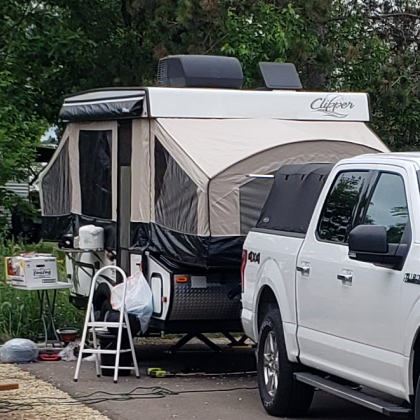 Pop-Up Campers는 매우 가벼워 소형차로도 견인이 가능한 RV이다. 접을 수 있는 캔버스 텐트가 설치되어 있어, 캠프 사이트에서 정박 시에 캔버스 텐트를 펼쳐 생활하고, 이동할 때나 집에 보관할 때는 접어서 보관할 수 있다. 작은 크기인 만큼 보관이나 이동에는 용이하지만, 실내 공간이나 수납공간은 제한적일 수밖에 없다. 또한, 트레일러 셋업에 시간이 소요된다. 비가 온 후에는 캔버스 재질의 텐트를 건조한 후 접어야 하는 불편함도 있다. 캔버스 텐트 대신 하드셀 팝업 형태도 찾아볼 수 있는데 대표적으로 ALiner가 있다.