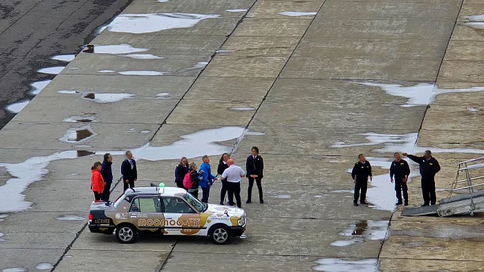 잠시 후 저 멀리서 택시 한 대가 빠르게 달려와 배 앞에 세우는데 거기서 두 명이 내렸다. 선박에서 이 모습을 지켜보고 있던 사람들이 환호성을 지르며 웃었고 두 한국 분은 멋쩍은 듯 손을 흔든다.