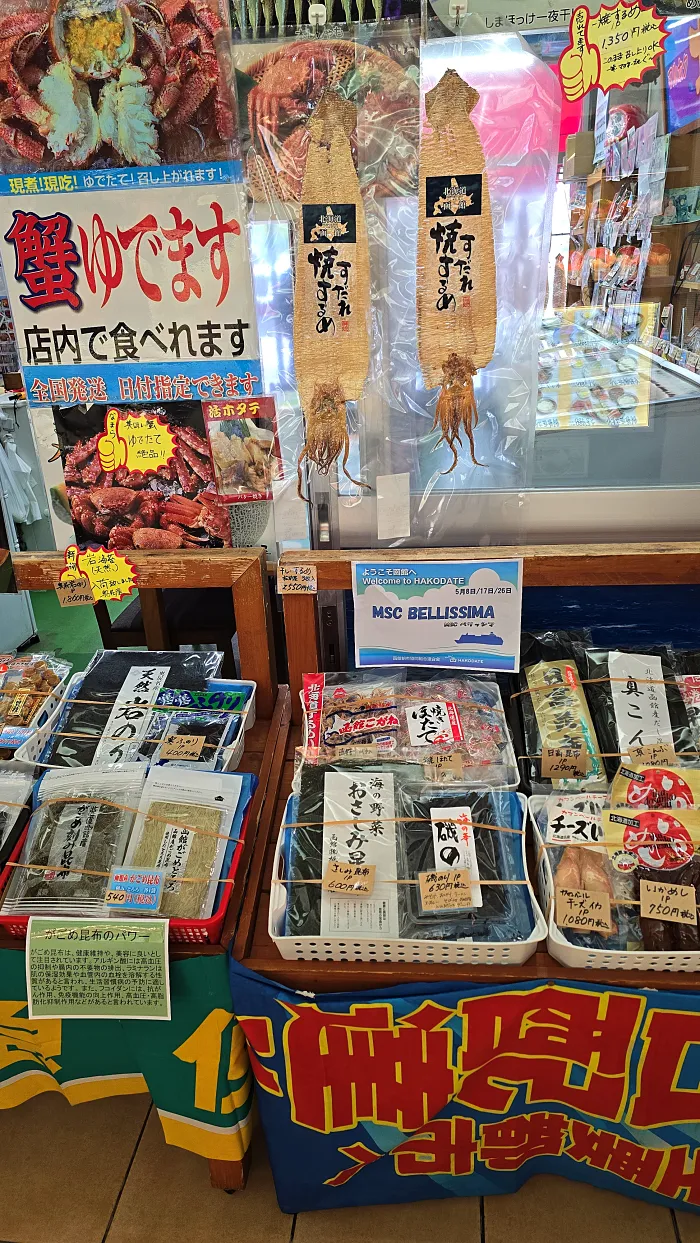 JR하코다테 역 바로 건너편에 하코다테 아침시장이 있다. 신선한 과일과 다양하게 포장된 건어물을 파는 가게들이 많이 있어 천천히 둘러보기 좋다.