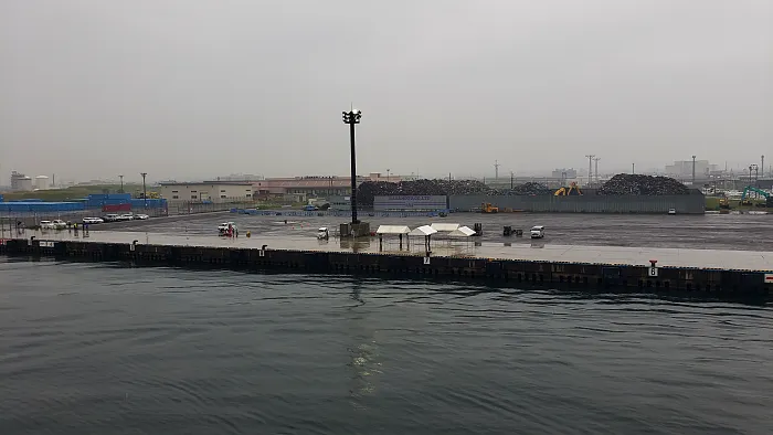 우리가 하코다테에 도착한 날 아침은 잔뜩 흐리고 비가 오는 날이었다. 아마 도선사도 선박에 탑승했겠지만, 복잡한 항구에 가까워지면서 천천히 항로 안내선을 따라간다.
