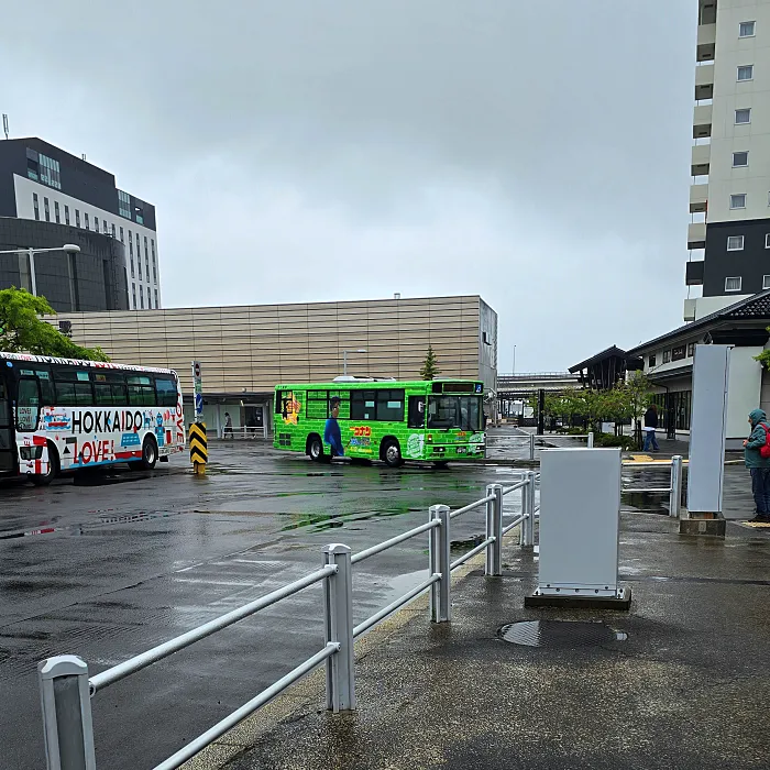입국심사를 마치고 크루즈 선박 앞에 준비된 무료 셔틀버스를 탑승하면, JR하코다테 역에 내릴 수 있다. JR하코다테 역은 규모가 큰 역은 아니지만, 하코다테 교통의 중심이라고 할 수 있다. 주변에 호텔, 환승 버스 정류장, 택시 승차장, 주차장, 등이 잘 갖춰져 있다.