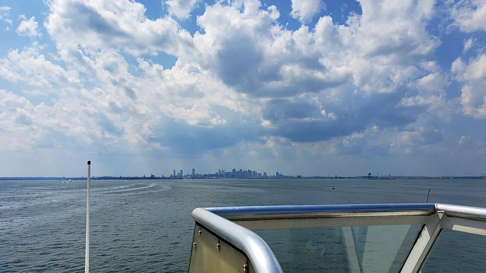 처음 투어를 시작할 때는 위 사진처럼 고래가 입을 크게 벌리고 물을 빨아들이거나, 점프하는 모습을 보기를 바랐다. 하지만, 도시에서 멀리까지 배를 타고 나가서 자연서식지에서 저 덩치 큰 고래를 본다는 건 즐거운 경험이었다. 다시 배는 보스턴을 향해서 돌아가는데 그새 하늘에 구름이 잔뜩 껴있다.