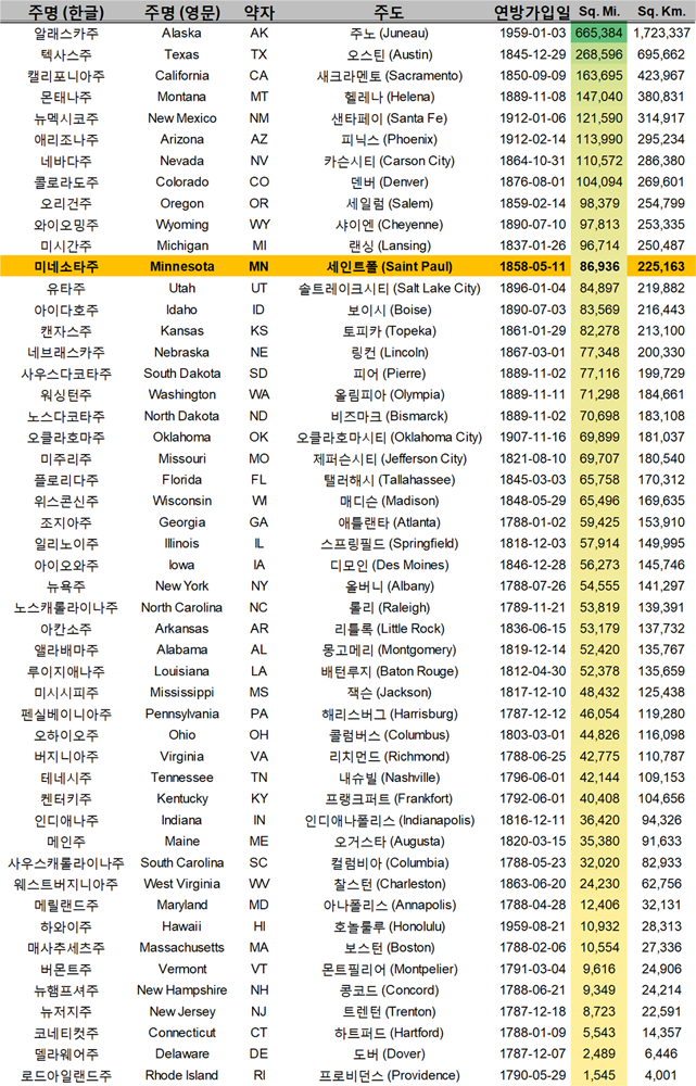 미네소타주 크기