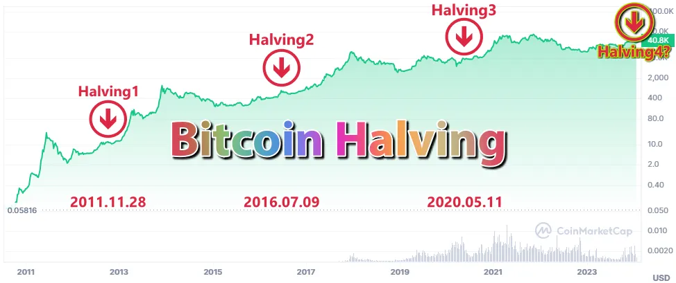 비트코인은 2100만 개로 한정되어 있는데 반감기마다 채굴보상이 절반으로 줄어든다. 지금까지 비트코인의 반감기는 2012년, 2016년 2020년 총 세 번 발생했고, 네 번째 반감기가 2024년 5월에 발생할 것이라고 예상한다고 한다.