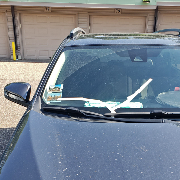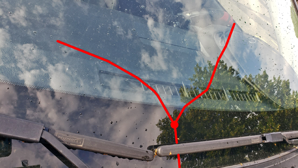 얼마 전 주말이 지난 다음날 출근을 위해 차에 타서 시동을 걸었는데, 차 앞유리에 금이 길게 가 있는 것을 봤다. 깜짝 놀라 확인을 해보니 앞유리 조수석 쪽 (passenger’s side) 하단에 무언가에 강하게 찍힌 자국이 있었고, 그 자국을 중심으로 3군데로 길게 금이 가 있었다. 그중 한 곳은 앞유리의 아래쪽 끝까지 금이 가 있었다.
