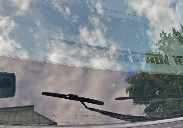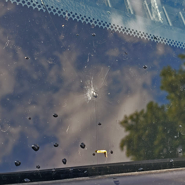 주말 동안 캠핑을 다녀오면서 고속도로를 이용했었는데, 그때 앞을 달리던 트레일러를 끌고 가는 트럭을 추월하면서 왼쪽으로 진행하려 차선을 바꾸는데 트레일러에 실려있던 돌조각들이 떨어지는 것을 보긴 했었다. 아마 그때 튄 돌조각 때문에 앞유리가 찍혔던 것 같다. 그날 집에 주차를 할 때까지 앞유리에 찍힌 자국이 있었는지 전혀 몰랐고, 위의 사진처럼 금이 가 있지도 않았다.