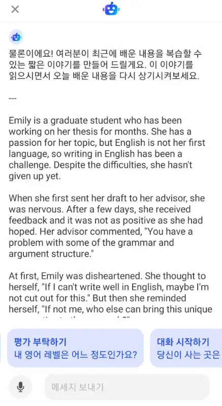 사실, ChatGPT 3.5 (무료버젼) 또한 무제한으로 사용할 수 있다. 적절한 프롬프트를 잘 작성하면 영어공부하는데 큰 도움이 될 것이다.
