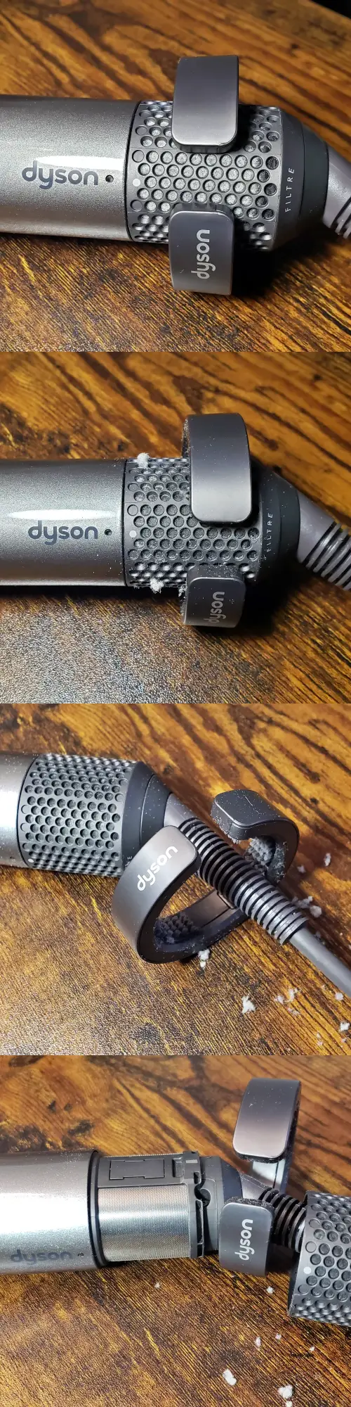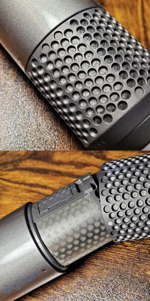 다이슨 에어랩을 사용하는 환경에 따라 다소 차이가 있겠지만, 일정기간 사용하다보면 필터에 먼지가 끼게 되고, 먼지가 너무 많이 쌓여 필터가 완전히 막혀버리면 에어랩 성능이 저하된다. 필터 상태를 가끔씩 살펴보면서 필터의 먼지를 제거해주는게 소중한 우리 에어랩을 오래 사용할 수 있는 방법이다.