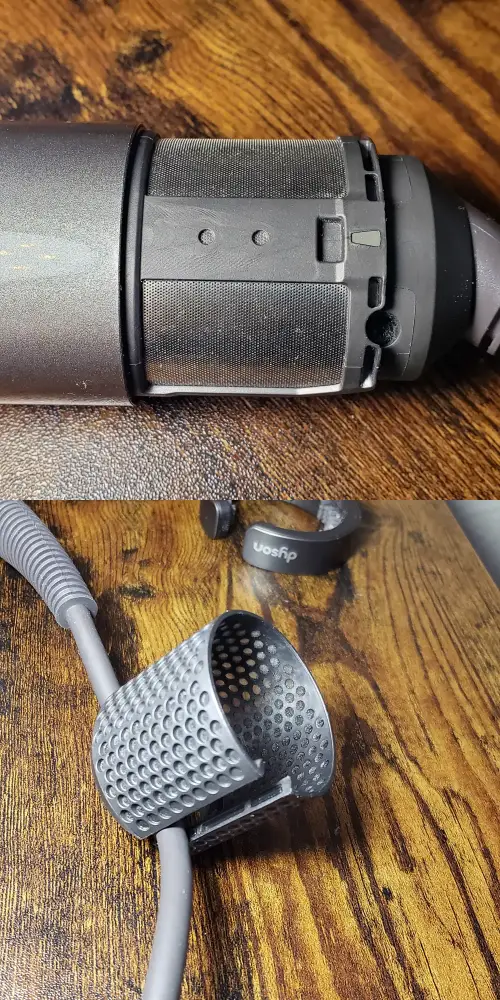 어느 날 다이슨 에어랩을 사용하려고 살펴보던 중 아래 부분의 필터에 먼지가 너무 많이 껴있는 것을 발견했다. 외부 필터는 물론이고 내부 필터에까지 먼지가 쌓여 있었다.