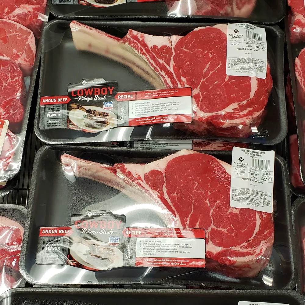 코스트코 비즈니스 센터에서 토마호크를 구입하고 얼마 뒤 샘스클럽에서 토마호크 스테이크를 찾아봤는데, 샘스클럽에서는 토마호크 스테이크 대신 뼈가 조금 짧은 카우보이 립아이 스테이크 (Cowboy Ribeye Steak)를 대략 6센티미터 두께로 한 덩어리씩 포장되어 있는 게 $24~28 (Unit price $9.98/lb)이었다.