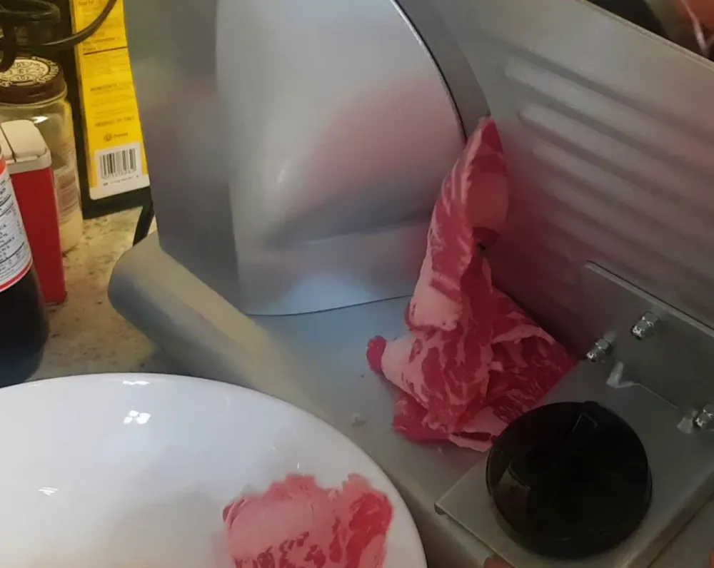 우리도 미국 마트에서 소고기 불고기용 고기를 찾아다닌 적이 있지만, 대부분 너무 얇거나 냉동으로 파는 제품뿐이었다. 그나마 아시안마트에서 적당하게 얇게 썬 고기를 판매하긴 하지만, 모두 냉동이었고 그나마도 보관상태가 좋지 않고 오래된 고기여서 누린내가 났다. 그래서 우리는 큰 고기를 사다가 집에서 직접 잘라먹기로 하고 육절기 (meat slicer)를 구매했다.